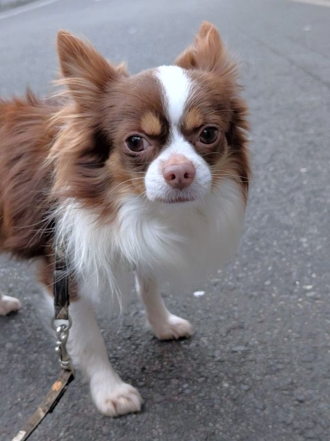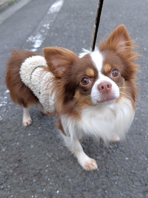 | 散歩 | トレーニング中 川沿いの散歩コースは楽しそうに歩きますが、人や車が来る道は怖がりながらもゆっくり歩きます 他犬に向かって吠える時があります |