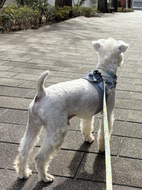 | 散歩 | 歩けます 車や自転車などに軽く吠えますが声をかけるとやめます |