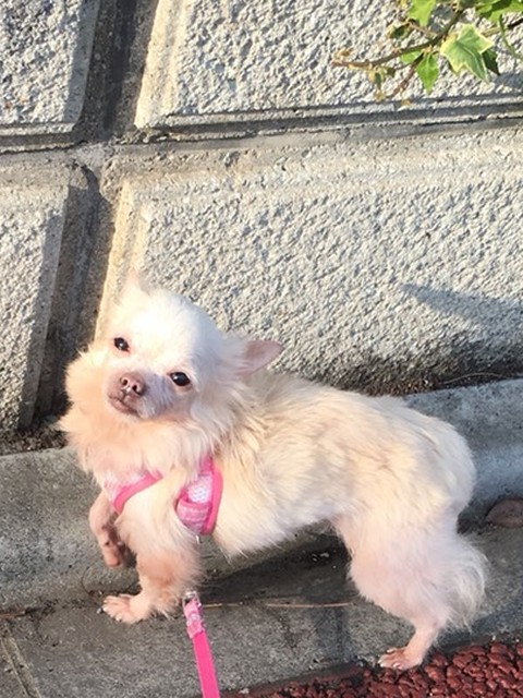| 特記所見 | 血液検査結果肝臓数値経過観察 老犬で背骨が曲がっており、足の筋力も弱っているのでフラつきはありますが、心臓など異常なく元気に歩き回ったりします 耳の毛が剥げていて、生えてくるかはわかりません。痩せています 乳腺腫瘍があり切除しています。検体結果は良性でした |