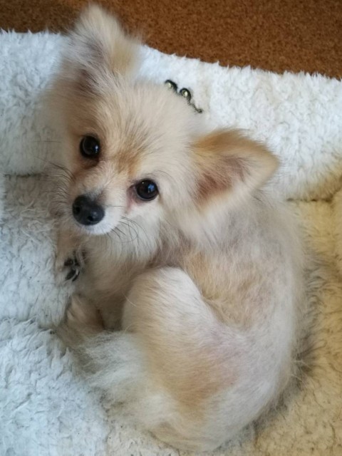 | 所見 | パテラがグレード3ですが今のところ日常生活に問題はありません 半年くらい様子をみて問題があれば手術が必要になるかもしれません、経過観察中です 毛が弱く擦れて切れてしまうので回復するまでお洋服は着れません。ポメラニアンらしい被毛になる様ケアしていきます |