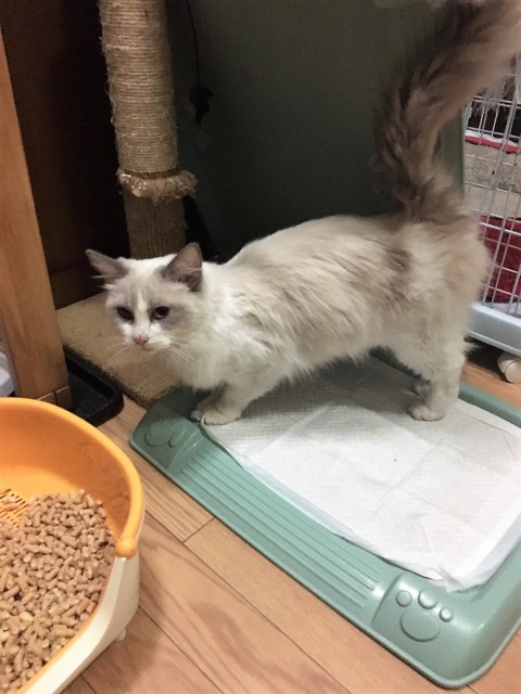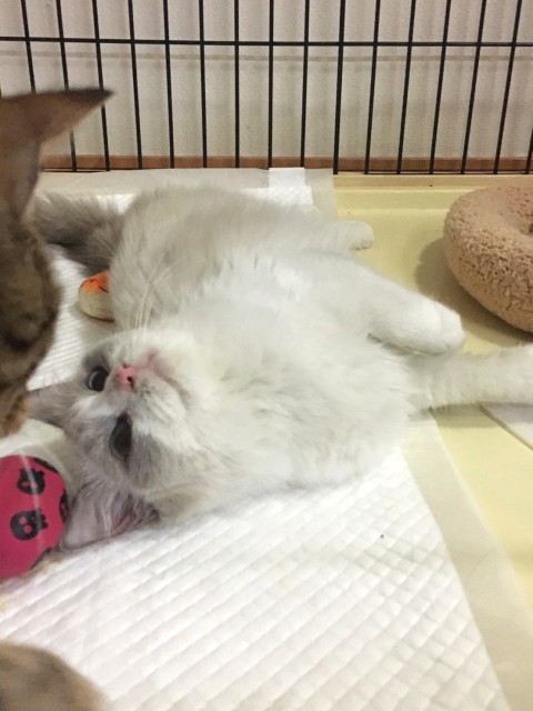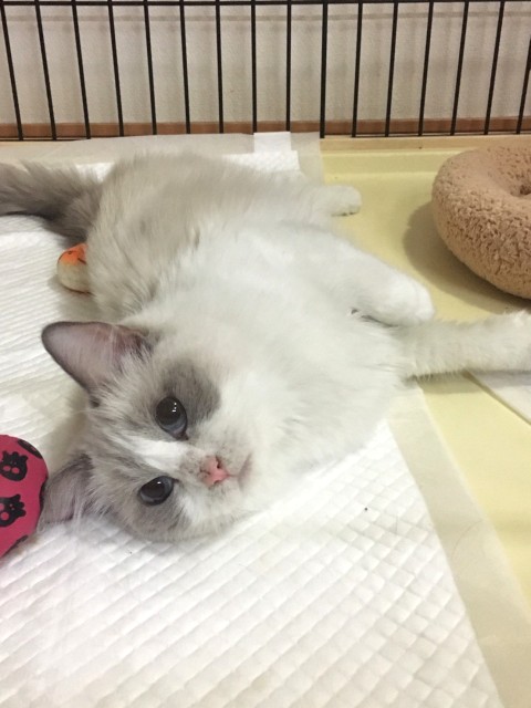 | 日常の様子 | ケージの中に入れると、ニャーニャー鳴いています 人が近づくと、ゴロゴロ言っていますが、手を入れると避ける時があり、甘え方や人とどう関わって良いかわからない様子があります ケージから出すと、ゴロゴロしながら色々なたころにスリスリとしたり、寝っ転がったりしています 他の猫は相性次第かと思います 犬にも特に動じません |