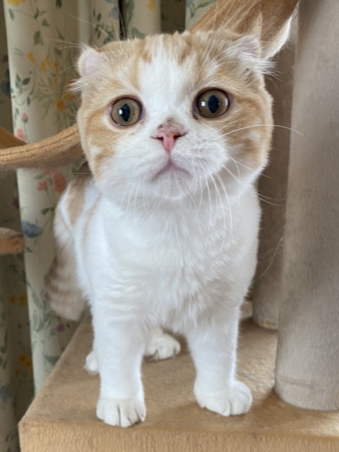 | 所見 | 折れ耳スコティッシュで、骨軟骨異形成症が出る確率の高い子です ダイナちゃんと姉妹です |