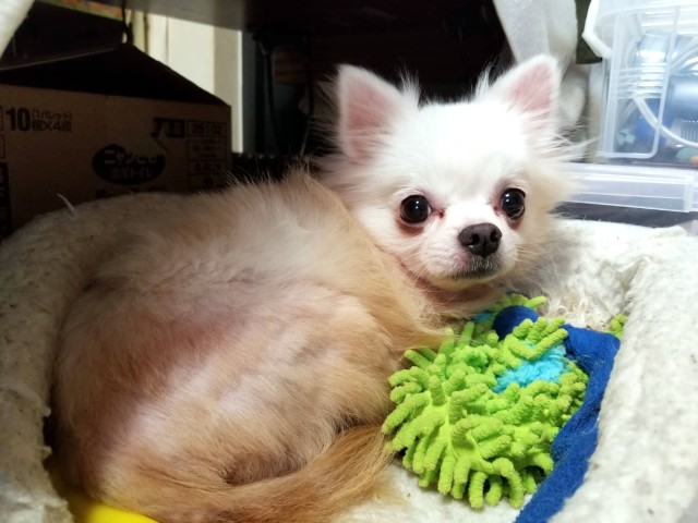 | 日常の様子 | ベットがお気に入りですのでご用意お願いします 狭い場所を好んでいます 仮名ですが呼ぶとシッポを振って戻って来ます 他犬と居るより人と過ごす事を好みます ご飯の時になぜだか隠れてしまいますが(他の犬が怖いのかもしれません)ゲージ内に入れて上げるか近くに連れて来てあげると食べます |