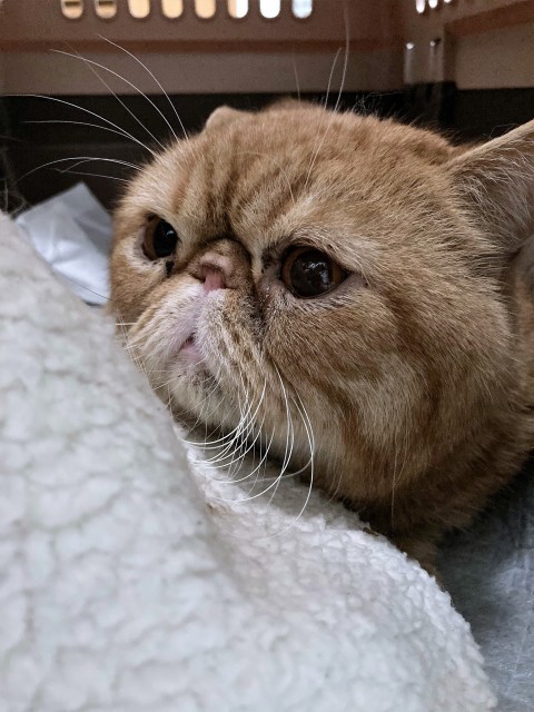 | お手入れ | シャンプータオルでこまめに拭いて、ブラッシングで清潔を保ってください エキゾチックショートヘアーなので、少し脂っぽいです こまめに顔や身体を清潔にしてあげてください |
