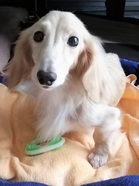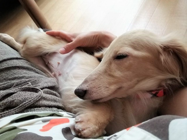| 特記 | 避妊時に鼠径ヘルニアの手術もしました 他犬に噛む可能性がありますので、一頭飼いをお勧めします お留守番が少なく、一緒に寝て頂ける里親様を希望します 声帯切除されているので、将来器官の病気になる可能性があります |