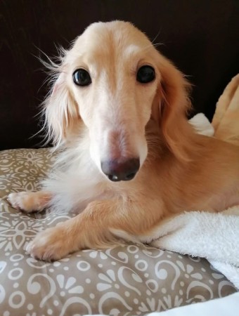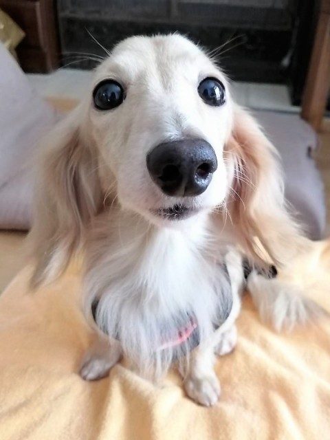 | 日常の様子 | ベッドより膝上が好きで、横でいつも構えて人の後を追っています 一人になると吠えるので夜は寝室に移動してサークルに入れてます |
