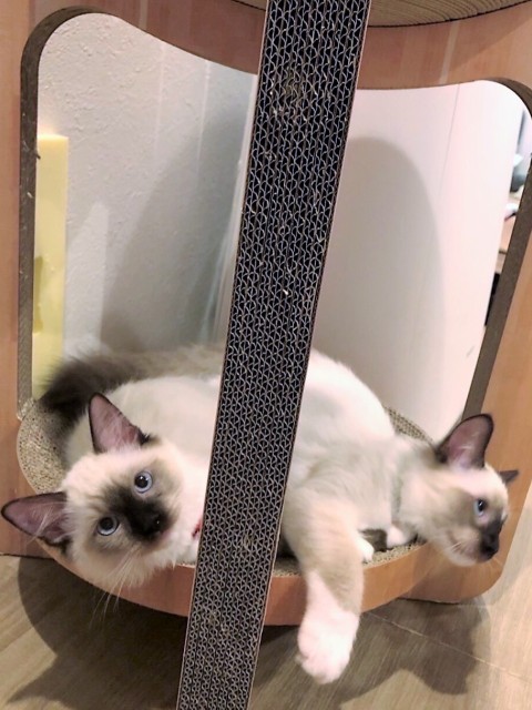 | 日常の様子 | とても活発で兄弟たちと遊んだり走ったりしています 大人の猫にも遊びを誘ったり、じゃらしやボールで1人遊びをするのも好きです 食いしん坊でキッチンの上に乗ります 犬とも問題なく暮らしています |