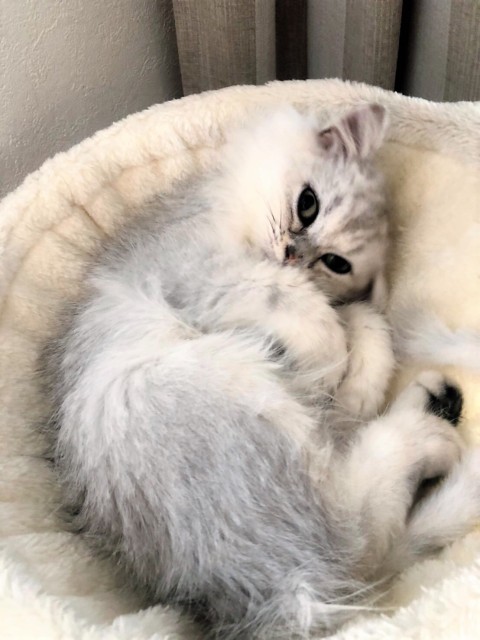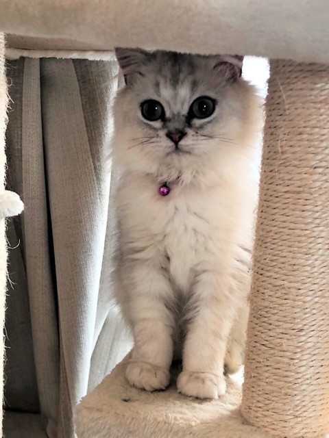 | 日常の様子 | 日中はキャットタワーで寝ていて、夜は他の猫と追いかけっこして遊んでいます トンネルやじゃらしが好きで1人遊びもよくします 撫でているとゴロゴロ甘えてきます 人間のご飯に興味があるようです 犬とも問題なく過ごしています |