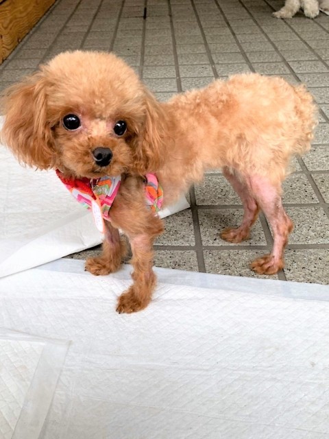 | 特記 | 声帯切除されているので、将来 気管の病気になる可能性があります 小さい子なので骨折に重々気をつけて生活してくださる方を希望 小さいお子さんのいるご家庭、お年寄りのいるご家庭には向きません マラセチア皮膚炎なのか、アレルギーからなのか、皮膚病があります 毎日の皮膚ケア、週2回のシャンプーケアが必要です |