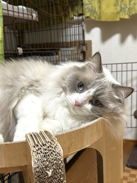 | 日常の様子 | 激しい遊びは好きでなく、おもちゃで遊ぶより人のそばでまったりとしているのを好みます 人の手をペロペロと舐めますが、たまにエスカレートして甘噛みになるときもあります |