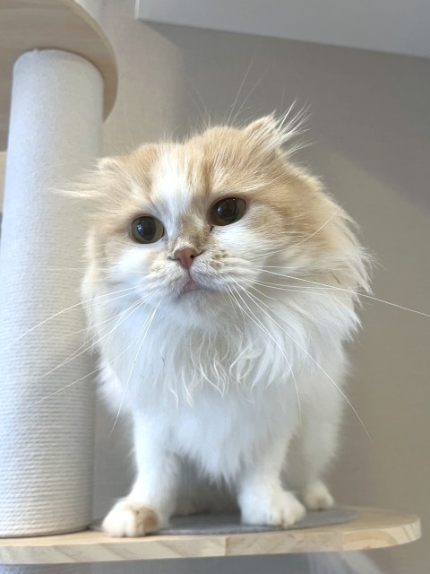 | 日常の様子 | 3段ゲージの上で日向ぼっこしたり、猫じゃらしやポインター遊びでは穏やかな性格から豹変してハンターになります 先住犬と預かり猫と生活していますが、被害を加える事はありません |