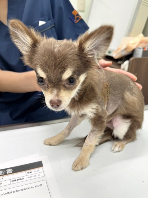 | その他 | 触診・聴診・血液検査・検便、異常なし 駆虫薬投与・ノミダニ駆除済み |